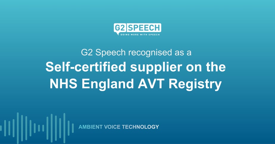 G2 Speech is pleased to announce that it has been successfully recognised as a self-certified supplier on the NHS England AVT (Ambient Voice Technology) Registry.